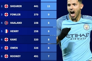 体育资讯11月10日讯 德转盘点了英超历史上上演帽子戏法次数榜,其中阿圭罗12次居首,哈兰德8次第四,具体如下: