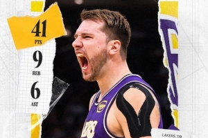 赛后湖人发布东契奇本场数据海报:赛季第四次砍下40+!四次40+也是联盟本赛季最多的。