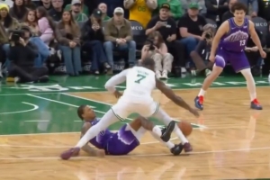 布朗被滑铲不犯规?主裁:两人接触前都滑倒了 所以没有吹罚犯规