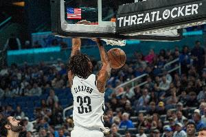 篮网中锋克拉克斯顿上半场效率不俗但罚球很铁,他打了16分半钟,8投5中、罚球5中2,得到12分9篮板4助攻,正负值高达+20!