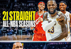 而且从现在到常规赛结束,勒布朗最多只能再缺席三场比赛才有资格参与奖项评选,包括最佳阵容。过去21年他连续入选最佳阵容。今天和我交谈的消息人士说,‘41岁的年纪,我更希望勒布朗跳过背靠背比赛,但我们还得看这与他可能再次入选最佳阵容的计划如何协调。’”