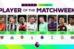 体育资讯11月25日讯 英超第12轮联赛已经完赛,英超官方也列出了本轮最佳球员的8人候选名单: