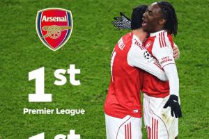 英超中,阿森纳6分优势领跑。