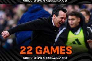 据livescore数据统计,阿尔特塔在阿森纳执教时期最长的18场不败纪录被埃梅里终结了,这位阿森纳前主帅确保了自己2018年创造的22场不改纪录没有被后来的继任者打破。
