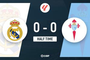 半场-皇马0-0塞尔塔 米利唐伤退贝林厄姆造险居莱尔失良机