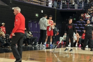 撕裂之城混音队VS斯托克顿国王队,克林根来到现场,暂停期间指导杨瀚森。