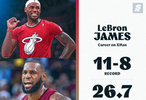 詹姆斯:11胜8负 场均26.7分7.5篮板7.2助攻