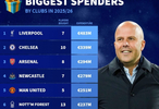 北京时间12月25日,在圣诞节之际,德转列出了世界足坛本赛季引援支出榜,利物浦以超4.8亿欧元高居第一,切尔西约3.4亿欧元第二,阿森纳约2.9亿欧元第三。