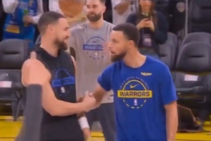 库里:“他通常都在差不多的时间热身,所以我知道他大概也会出来。我们在半场有过一次短暂的互动。”