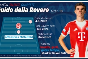 拜仁青训主管约亨·绍尔表示,卡尔的成功为其他青训球员打开了通往一线队的大门。《图片报》撰文重点介绍了拜仁中场位置上的四位潜力新星。