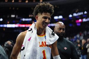 本场比赛,老鹰球员杰伦·约翰逊发挥出色,进攻端里突外投效率很高,且攻防表现全面,他出战32分钟,22中15,三分6中3,罚球1中1砍下34分10篮板6助攻2抢断1盖帽,正负值+12。